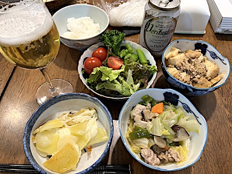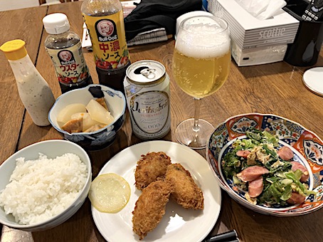 夜は、豚生姜焼き、カキフライ等々・・・・