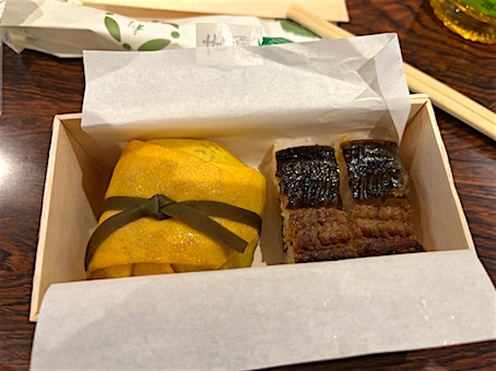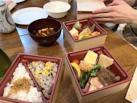 お昼は交換会場で初会恒例の「八竹」の茶巾と巻き寿司の入ったお弁当、美味しいです!