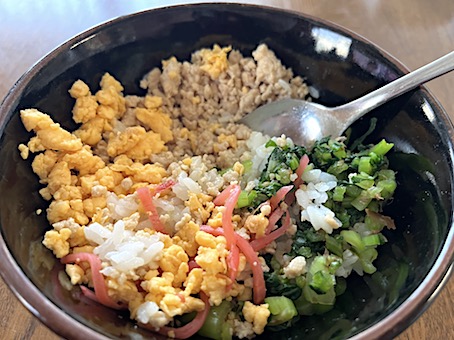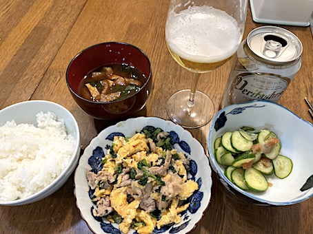 夕方遅い時間に、おやつのケーキたくさん食べちゃったので、夕飯は焼き飯風のをほんの一口だけにしました。