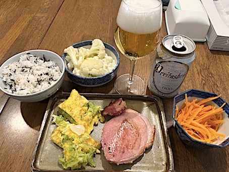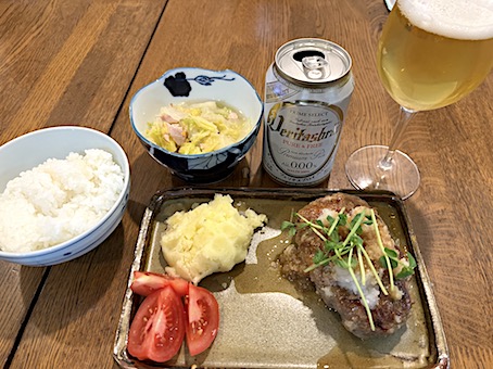 お日は昨日の残り物の焼き飯と、サミットで買ってたポテサラ等少々。