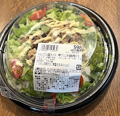 Today's Lunch・・・・・、セブンイレブンのこれまた新作!「ビーフシチュー仕立てのオムライスドリア」とミックスサラダ。これは正解、美味しかったです。570kcal+24kcal+ドレッシング・・・。