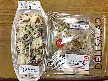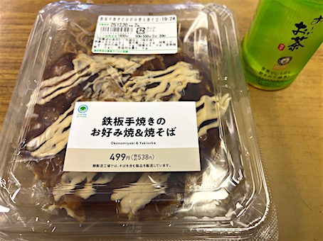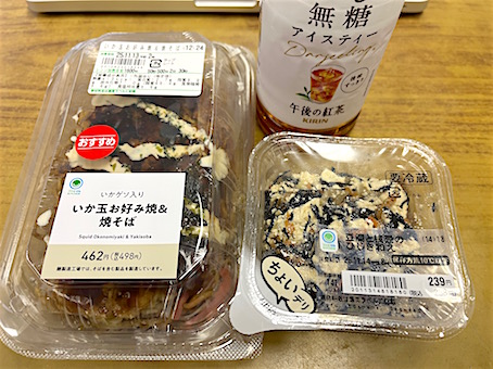 Today's Lunch・・・・・、ファミリーマートの「鉄板手焼きのお好み焼き&焼そば」、粉もののくせに以外とヘルシーで 470kcal也。夜は、エビピラフにサラダ、ポタージュスープ。