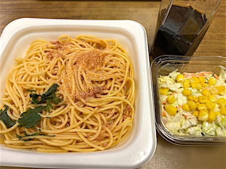 Today's Lunch・・・・・、ファミリーマートの「大盛 明太子スパゲティ」今日も738kcalもあるけれど、まぁ良いか??