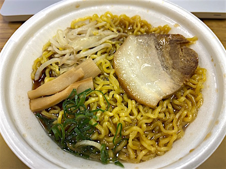 Today's Lunch・・・・・、ファミリーマートの「さっぽろ 純連監修 正油ラーメン」663kcal、かなり脂っこいスープでした・・・、美味しかったけれど、もう良いかな?