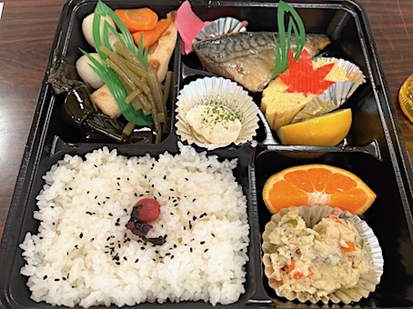 お昼のお弁当、ボリュームたっぷりでしたが完食してしまいました。