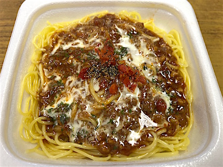 Today's Lunch・・・・・、ファミリーマートの「鎌倉パスタ監修 生パスタ チーズボロネーゼ」513kcal也。これは麺もソースも美味いぞ!!