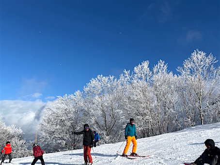 真っ白く化粧した木々と青空のコントラスト、最高の景色です!