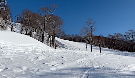 ゲレンデは雪量たっぷり、コースも(平日なので動いていないリフトもありますが)ほとんど全部オープンで、雪質も硬いですが悪くはなかったです。